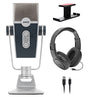 AKG Pro Audio Lyra Ultra-HD, Four Capsule, Multi-Capture Mode, USB-C Condenser Microphone for Recording and Streaming Bundle with Samson SR350 Headphones, and Blucoil Aluminum Headphone Hook
