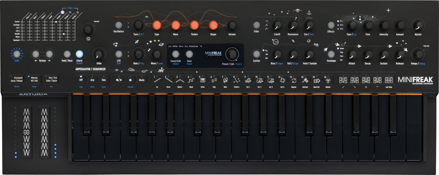 - Hybrid Keyboard: The Arturia MiniFreak is a 37 key polyphonic hybrid keyboard that unites dual digital sound engines with analog filters, playful modulation, instinctive sequencing, and rich stereo effects for sounds that are immediately curious, beautiful, and chaotic in equal measure
