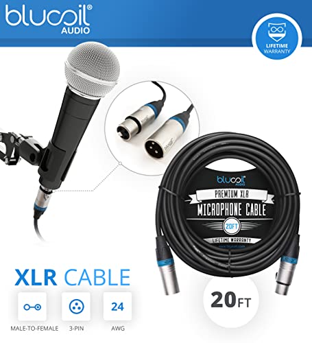 Details: Blucoil Audio 20-FT Balanced XLR CableThe 20-foot Blucoil cable interconnects your microphone to an audio interface, mixer, preamp, or recorder. It is made with premium Male-to-Female Neutrik-equivalent Zinc Alloy connectors, protected with high-density PVC Jacket. The 92% shielding protects your audio signal from EMI and RFI noises. The OFC wire makes sure that it provides the best possible conductivity and avoid lost signal or degeneration. The balanced XLR cable is compatible with popular microphone brands such as AKG, Audio-Technica, Nady U-2100, Telefunken M80, and more.TECHNICAL SPECS:Cable Length: 20 feetMaterials: Bare Copper, Oxygen Free Copper CablesWire Gauge: 24 AWGShielding: 92% ShieldingConnector Type: Male to Female | Neutrik Equivalent - High quality Zinc Alloy
