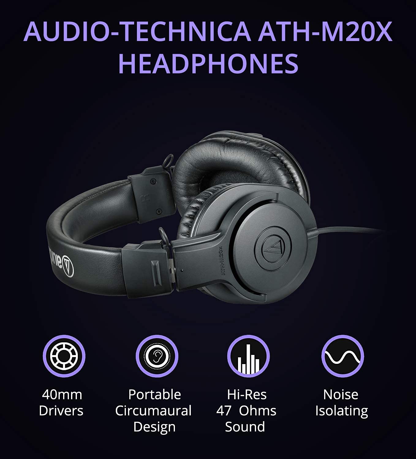 - MONITOR YOUR RECORDING IN REAL-TIME - The noise-isolating ATH-M20x dynamic headphones are tuned for enhanced low-frequency performance. It is ideal for studio tracking and mixing!