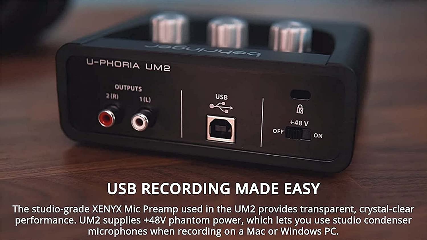 - MAKE THE BEST RECORD WITH U-PHORIA - The UM2 enables you to record up to 48kHz audio resolution. It has 1 XENYX mic preamp, offering +48V phantom power for studio condenser mics. The UM2 is compatible with Avid Pro Tools, Ableton Live, Cubase, and more software.