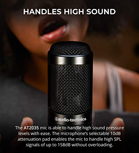 - DELIVERS SMOOTH, DETAILED AUDIO - The versatile Audio Technica AT2035 Microphone has a large diaphragm that produces pleasant, natural sound and 12dB low noise.