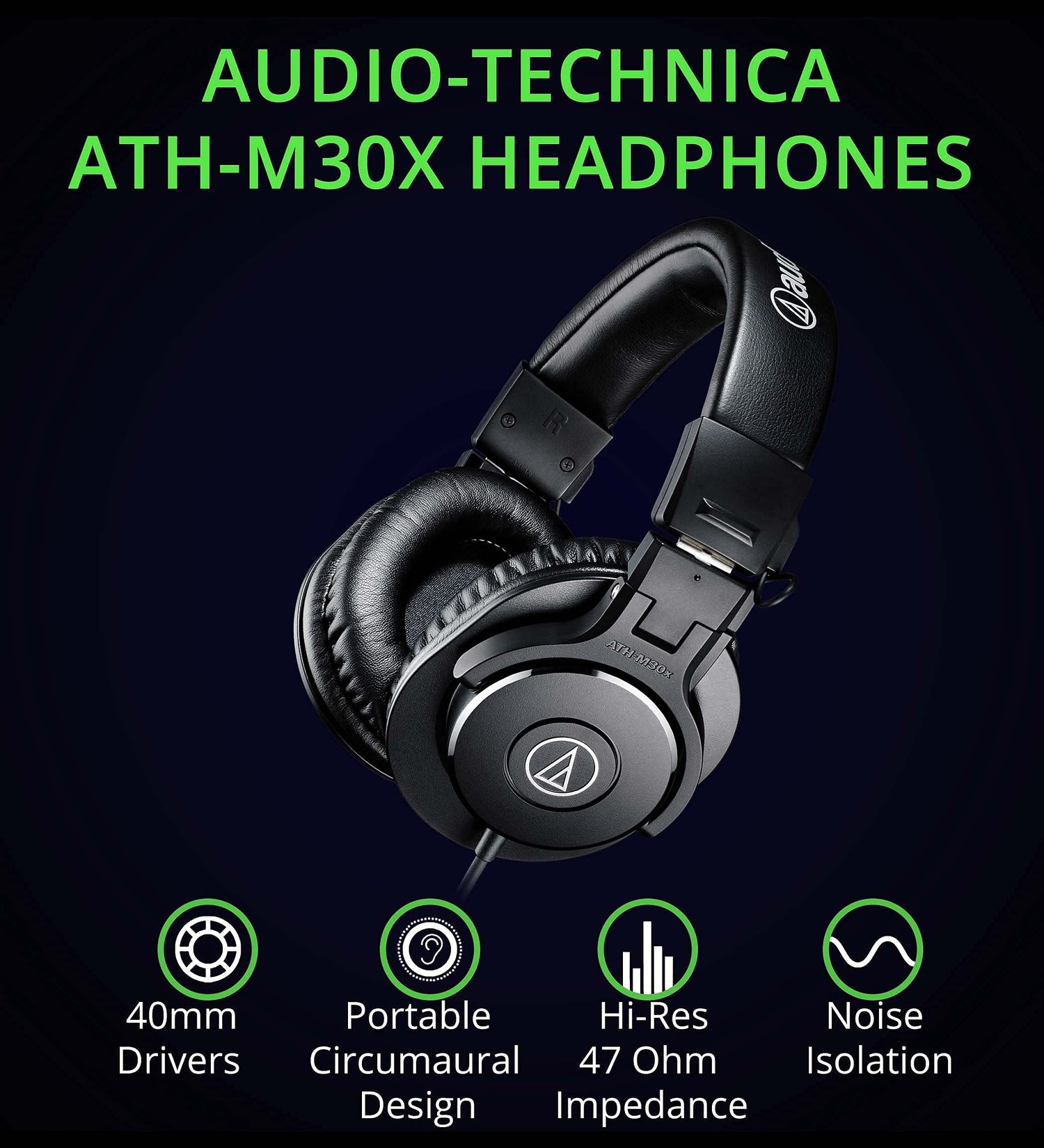 - DELIVERS CLEAR, TAILORED RESPONSE - The Audio Technica ATH-M30x Headphone's 40mm drivers offer an exceptional midrange definition and reproduces crystal-clear audio across the 15Hz-22kHz frequency range.