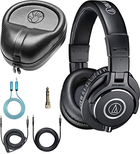Details: Audio Technica ATH-M40x Dynamic HeadphonesThe Audio Technica ATH-M40x offers exceptional Soundstage and accurate audio reproduction. It's the perfect pro headphones for gaming and live streams. The dynamic headphones have a broad 15Hz~24kHz frequency response and boast 35 Ohm impedance. The ATH-M40x delivers more overall accuracy than the M50x. With 90-degree swiveling earcups, you can easily do one-ear monitoring.TECHNICAL SPECS:Type: Closed-Back DynamicDriver: 40mm Neodymium MagnetVoice Coil: Copper-Clad Aluminum WireImpedance: 35 OhmFrequency Response: 15Hz~24kHzSensitivity: 98dBMax Input Power: 1,600mW at 1 kHzWeight: 240gAccessories: Detachable 3.9~9.8' Coiled Cable and 9.8' Straight Cable, 1/4" Screw-On Adapter, Protective Carrying PouchAlso Comes With:Blucoil 6-FT Headphone Extension CableThe Blucoil audio cable adds 6 feet of length to your earphones/headphones while maintaining good sound quality. It is equipped with gold-plated split 3.5mm male-to-female TRS connectors and oxygen-free copper (OFC) conductors, ensuring your signal transfer stays clean without any noise distortion. The Blucoil extension cable is compatible with smartphones, PCs, portable amps, MP3 players, and more!Slappa HardBody Pro Headphone CaseThe Slappa Hardbody Pro Hardcase fits most full-sized headphones from popular models. It is compatible with ATH-M40x. The casing features a Molded Duro-Shock xEVA exterior and crushed-velveteen interior lining, which protects your beloved headphones from unwanted scratches and water damages.Inner Case Dimensions (DxWxH): 4.5 x 7.5 x 8.8"