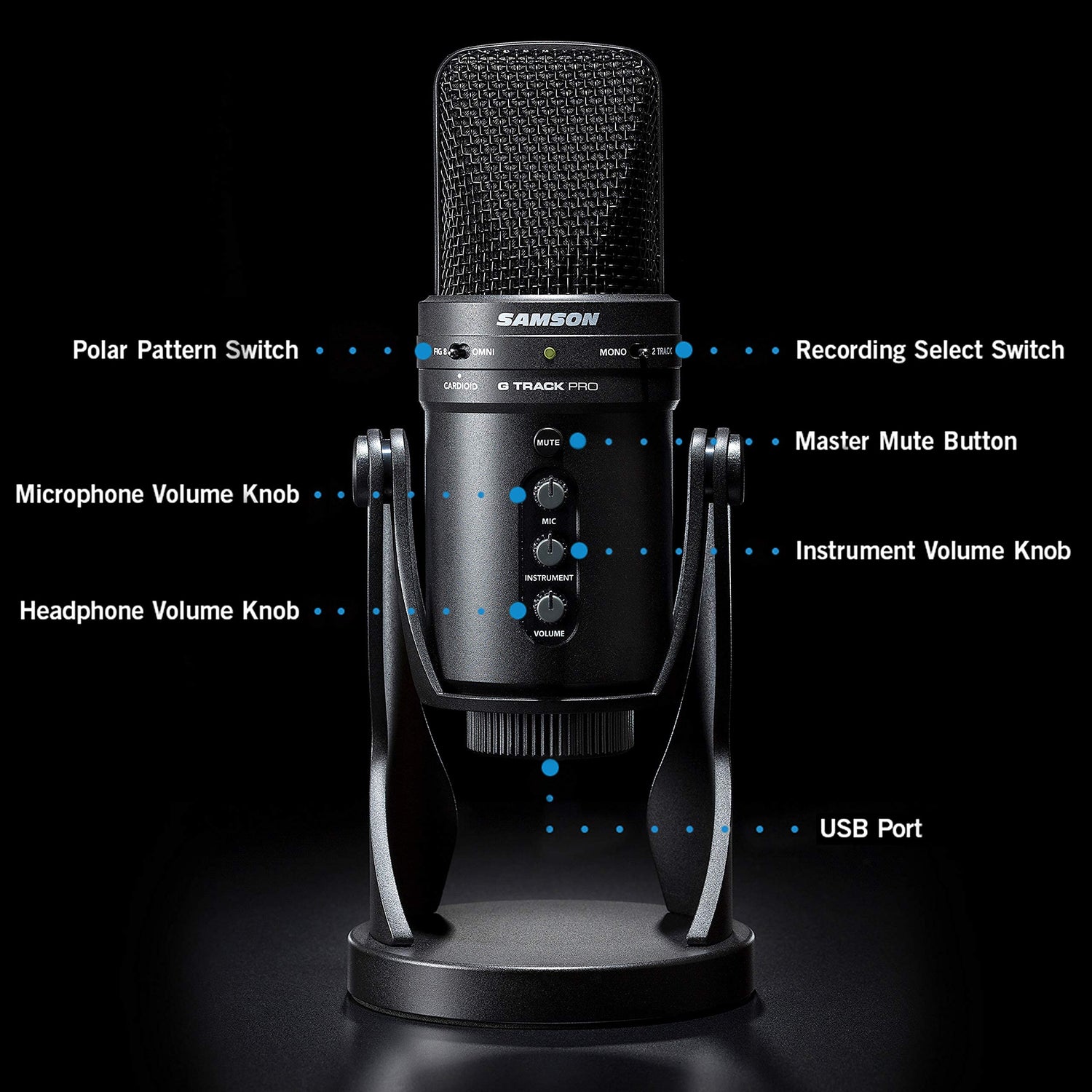 - INCLUDES - Samson G-Track Pro Professional USB Condenser Microphone with Audio Interface, Black (SAGM1UPRO). Blucoil Portable USB Audio Interface with 48V Phantom Power for Windows and Mac; 5-FT USB Cable; 3M Adhesive Pads. Blucoil 3-Foot USB 2.0 Male to Female Extension Cable.