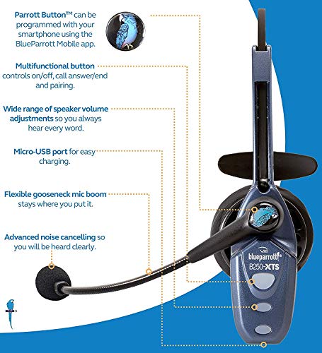 BlueParrott B250-XTS Bluetooth Headset with Noise Cancelling Microphone for iOS and Android Bundle.
