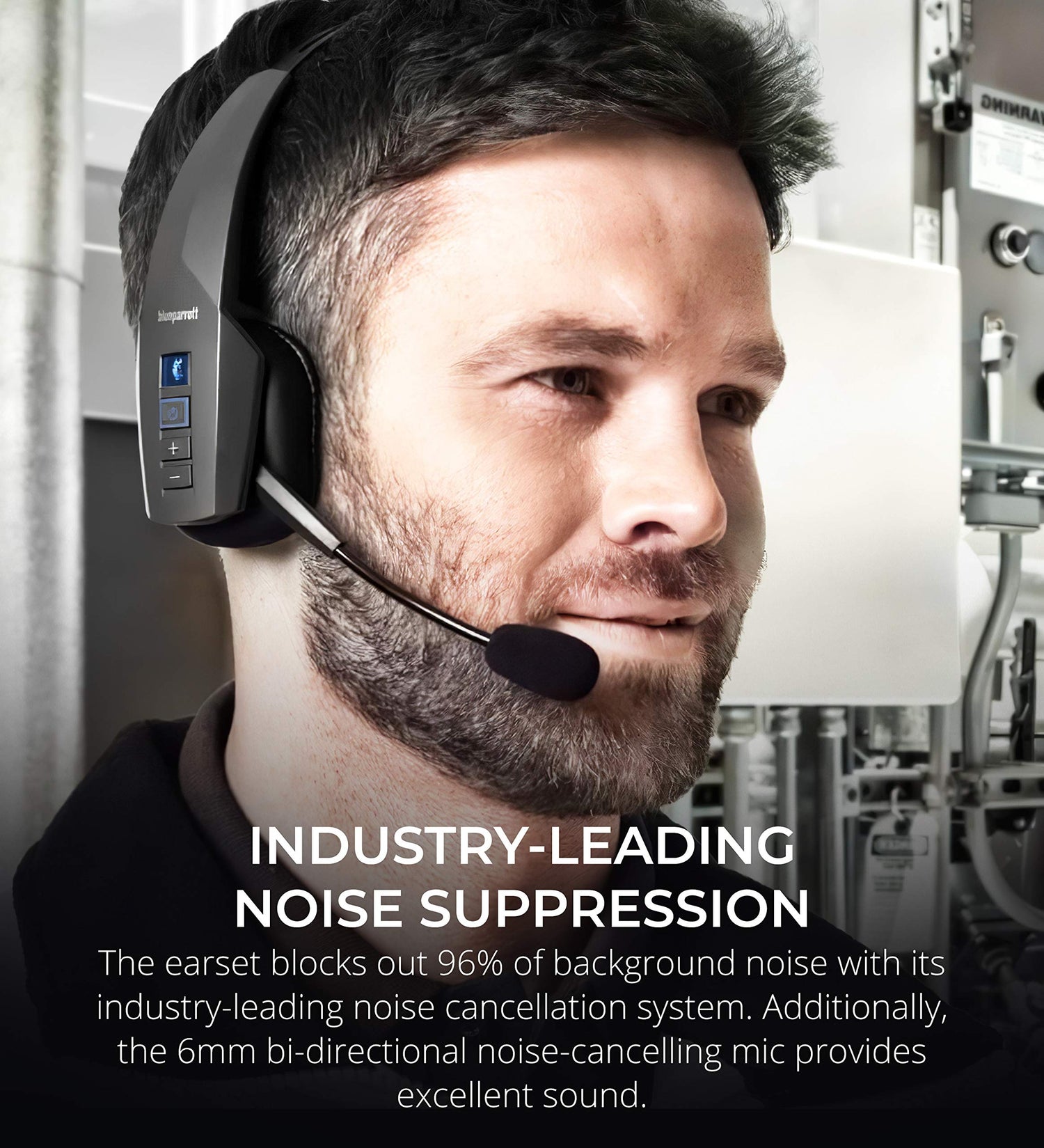 BlueParrott B350-XT BPB-35020 Noise Canceling Bluetooth Headset with 300-FT Wireless Range for iOS and Android Bundle with Blucoil Headphones Carrying Case, and Replacement Ear Pads