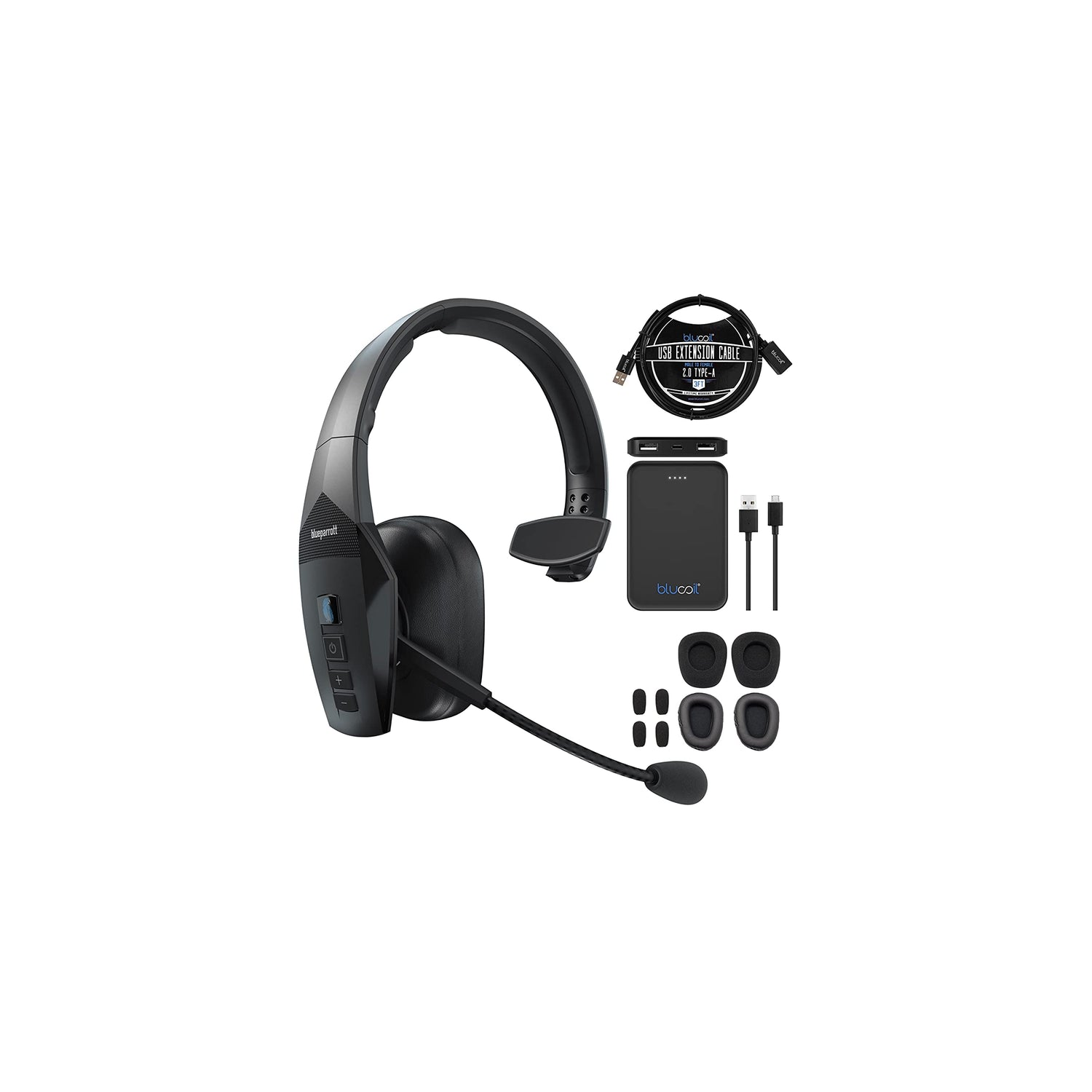 - INCLUDES - BlueParrott B550-XT Voice-Controlled Bluetooth Headset - Industry Leading Sound with Long Wireless Range, Extreme Comfort and Up to 24 Hours of Talk Time; USB Charging Cable; Foam Ear Cushion; Microphone Windscreen. Blucoil 3-Foot USB 2.0 Male to Female Extension Cable. Blucoil Replacement Ear Pad Cushions and Microphone Windscreens Kit for Blueparrott Wireless Headsets.