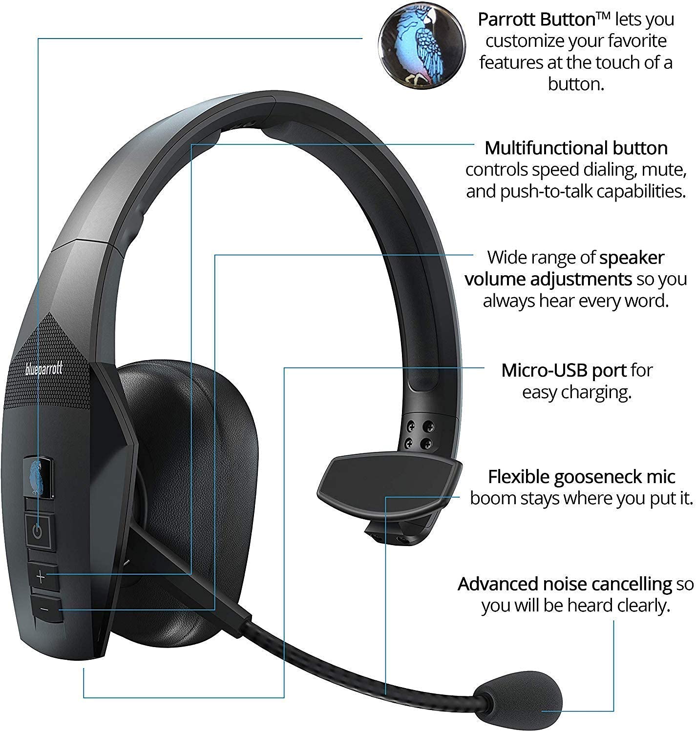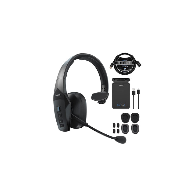 Details: BlueParrott B550-XT Bluetooth HeadsetThe BlueParrott B550-XT Headset provides crystal-clear phone conversations as it blocks out 96% of background noise. It has voice-controlled functions so you can focus more on your job. Install the BlueParrott app into your smartphone to activate voice assistants, speed dialing, and get access to BlueParrott's software development kit (SDK). By pressing the Parrott Button, you can activate the enterprise mobile devices integration. The BlueParrott SDK is compatible with Zebra Workforce Connect, Cisco Instant Connect, ES Chat Enterprise, Sonim, and more. B550-XT is ideal to use for field service crew and warehouse workers.TECHNICAL SPECS:Type: 36mm 32 Ohm Speaker Bidirectional Electret MicrophoneWireless Connectivity: NFC, Bluetooth 5.0 | Operating Range: 300-FT | Security: 128bit EncryptionSupported Bluetooth Profiles: A2DP v1.3.1, HFP v1.7, HSP v1.2, and moreNoise Cancellation: 96%Talk Time: 24 Hours | Standby: +400 HoursFrequency Response: 150-6800HzSensitivity: 123dB SPL at 1mW/1kHz Speaker, -47dBV/Pa MicPower Source: 380mA Battery | Charging Time: 3.5 HoursDownloadable Software: BlueParrott Updater, BlueParrott AppAccessories: USB Charging Cable, Mobile Adapter, Foam Ear Cushion, Mic WindscreenAlso Comes With:Blucoil Replacement Mic Windscreens and Ear PadsThe Blucoil Replacement Ear Pads and Microphone Windscreens Kit is designed to replace the default accessories of BlueParrott B550-XT Headset. It includes a pair of leather earpad cushions, pair of foam ear pads, and four windscreens. These headphone accessories keep the sound quality of your B550-XT in tip-top-notch condition.Get the B550-XT Bundle and receive these Blucoil exclusives:3-FT USB 2.0 Type-A Extension Cable