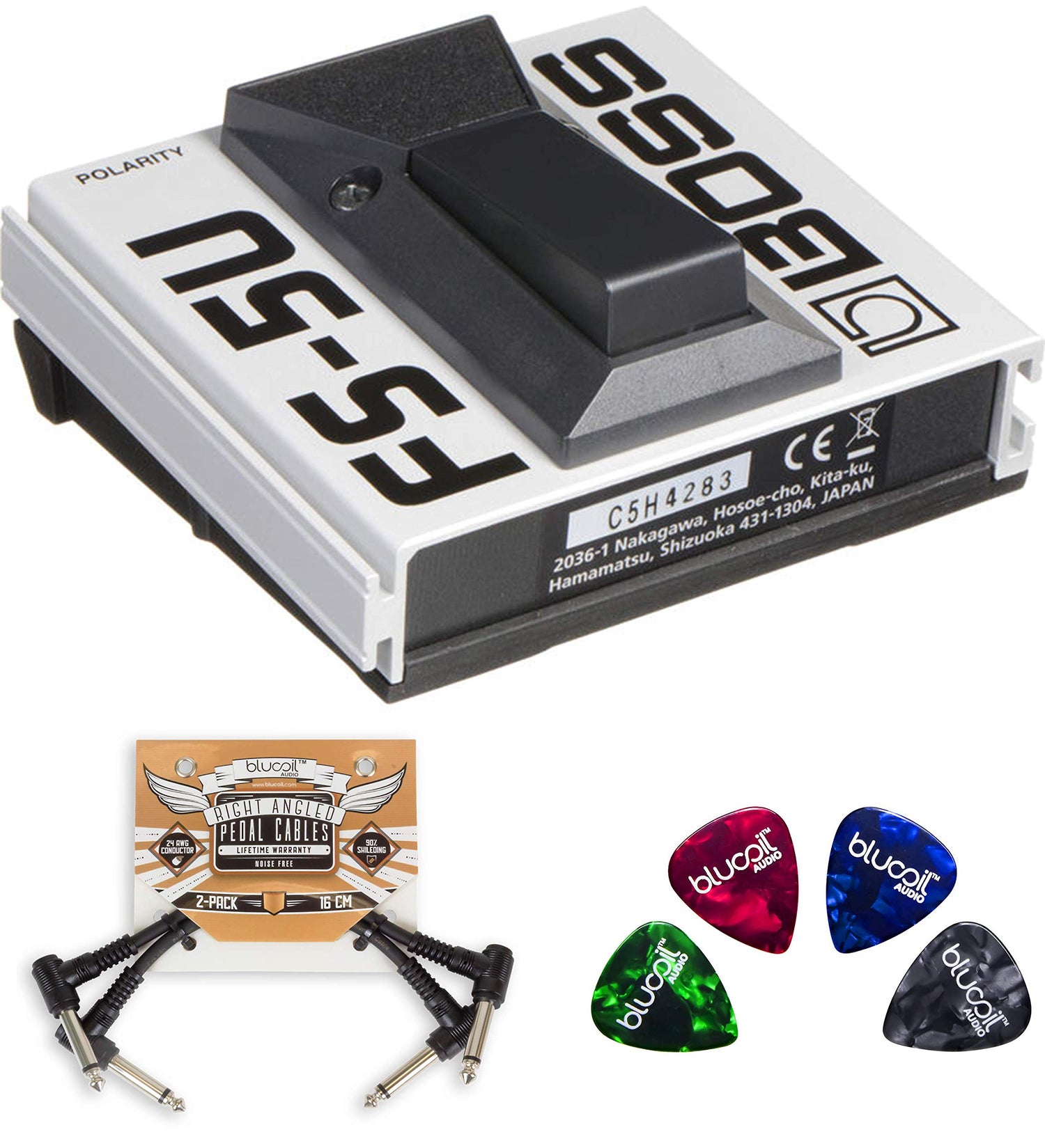 BOSS FS-5U Non-Latching Footswitch Pedal Bundle with 2-Pack of Blucoil Pedal Patch Cables and 4-Pack of Celluloid Guitar Picks