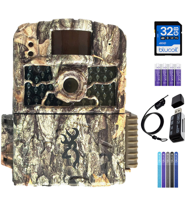 - INCLUDES - Browning Trail Cameras Strike Force HD Max, Camo, BTC 5HD-MAX; 6-Foot Tree Mount Strap. Blucoil 32GB SD Card. Blucoil 6.5-Foot Multi-Functional Combination Cable Lock with 4-Digit Password Code. 4-Pack of Blucoil AA Batteries. 5-Pack of Blucoil Reusable Velcro Cable Ties. VidPro USB 2.0 Card Reader.