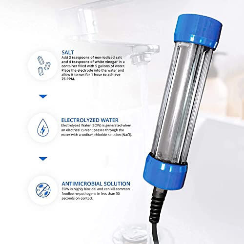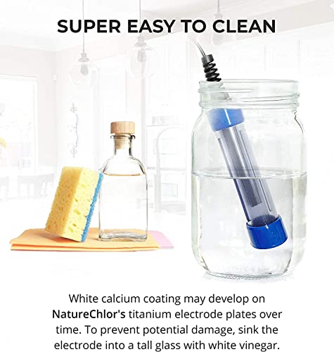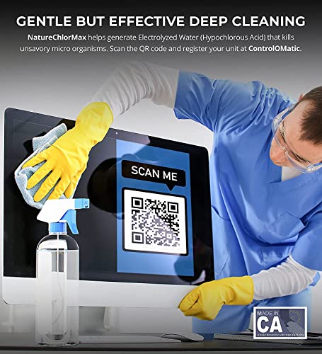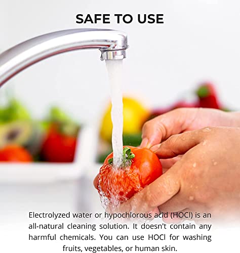- DEEP CLEAN WITH ELECTROLYZED WATER - NatureChlor uses electricity to change the chemical structure of non-iodized salt, water, and vinegar into a powerful cleaner called hypochlorous acid (HOCL). Easily make 225 PPM in 1 quart of water in only 15 minutes with just 1/2 teaspoon of salt and vinegar.