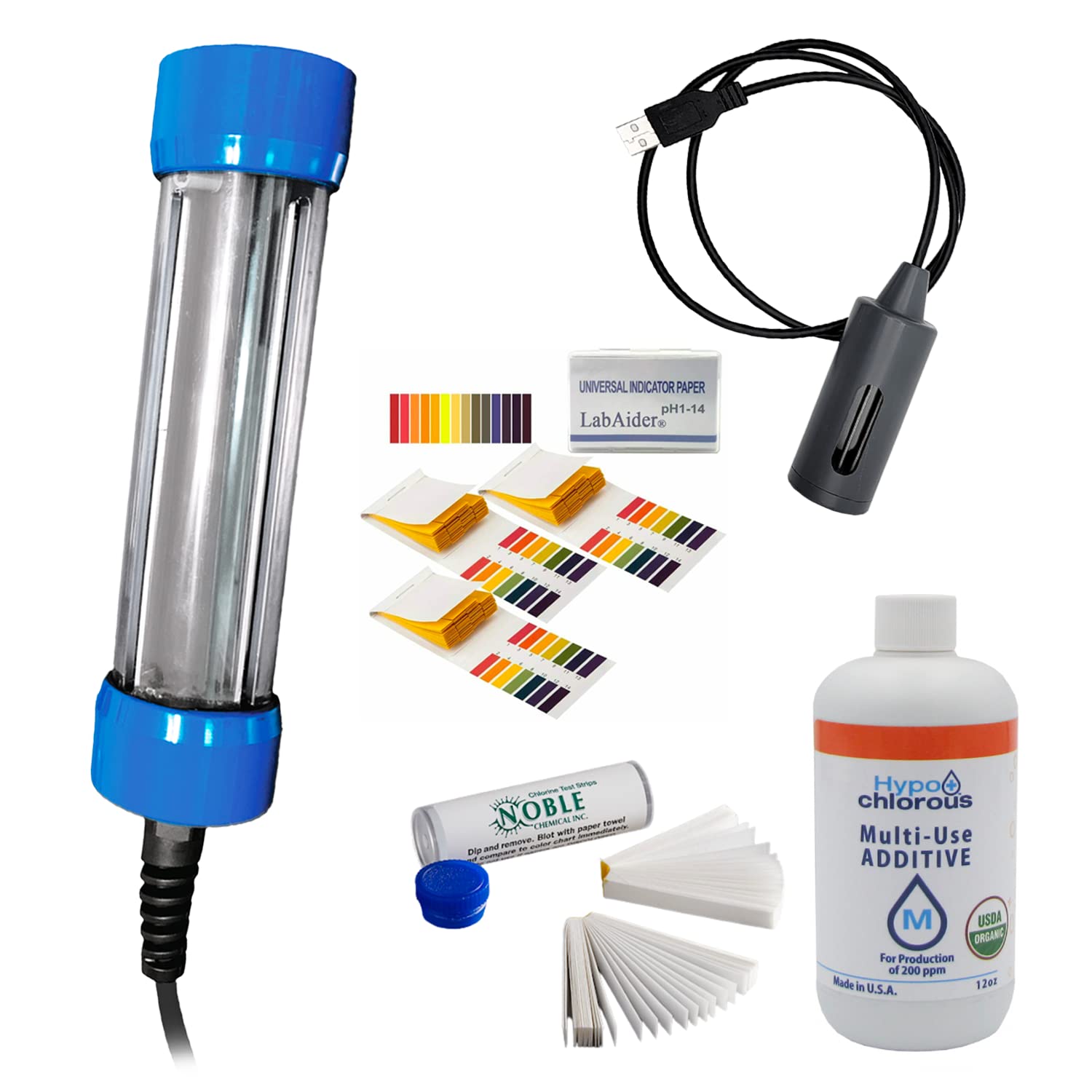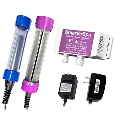 Details: ControlOMatic SmarterSpa Saltwater Chlorine GeneratorSmarterSpa knows when to turn on and when the generator is powered on for a fixed amount of time. When the generator turns off, it will be off until it needs to turn on again, based on the chlorine measurement. It's super easy to use SmarterSpa. Add 1.5 LB of salt per 100 gallons of water, and then drape the cell over the side of the tub. Submerge the cell deep into the spa water. Plug the power supply into a wall outlet, and SmarterSpa will generate chlorine.Features:Built-in Chlorine Detection technology prevents over-chlorinationOnboard Salt Level Indicator technology informs you when to add salt or boost the chlorine productionUp to 30g per day of pure chlorination10 time-based power levels of chlorine productionLow 1,500-2,000 PPM salt concentrationCell life span = 7,000 hours of pure chlorinationBuilt-in Automatic CleaningAlso Comes With:ControlOMatic NatureChlor Electrolyzed Water GeneratorNatureChlor is a semi-automated, saltwater chlorine generator that produces a high value of hypochlorous acid (HOCl) with a small volume of water in a short amount of time. It generates chlorine when you dissolve non-iodized salt (sodium chloride) in water. Apply some current to the saltwater solution to generate electrolyzed water (EOW). Electrolysis is the process of an electrical current passing through the water with sodium chloride solution. This then generates HOCl. With one half teaspoon of salt and vinegar, NatureChlor can make 225 PPM in 1 quart of water in only 15 minutes.HOCl is neutrally charged and repels negatively-charged micro organisms.It is safe to use for cleaning food and washing your skin. NatureChlor can also generate potassium hydroxide (KOH), an effective degreaser, if you substitute salt with potassium carbonate. The KOH solution can degrease kitchen counters, ovens, barbecue grills, stovetops, and floors.