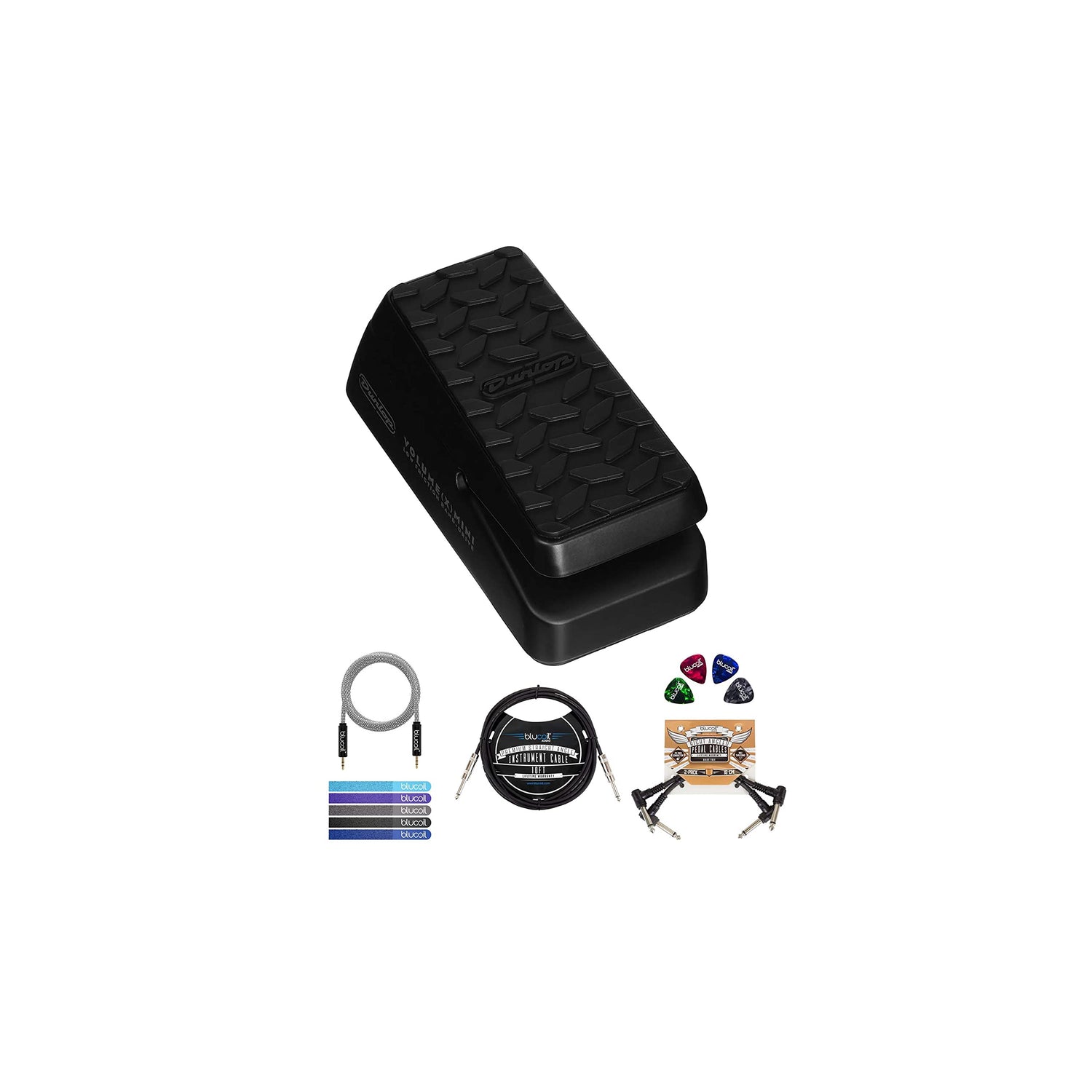 - INCLUDES - Dunlop Volume X Mini Pedal (DVP4). Blucoil Premium 10-Foot Instrument Cable with 1/4" Straight Connectors and PVC Shield for Guitars and Amps. 2-Pack of Blucoil Right-Angled Patch Cables for Effects Pedals. 4-Pack of Blucoil Celluloid Guitar Picks with 0.71mm Gauge (Assorted Colors). 5-Pack of Blucoil Reusable Velcro Cable Ties. Blucoil 5-Foot Audio Aux Cable.