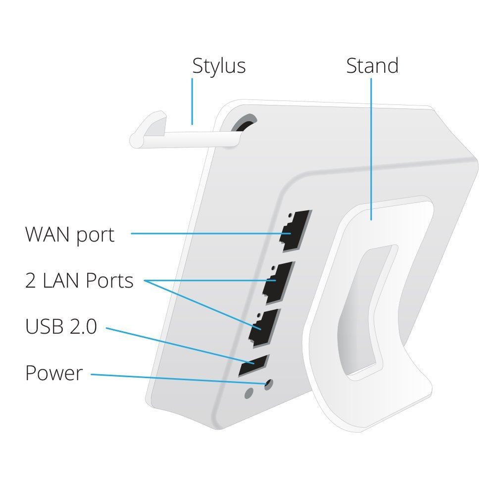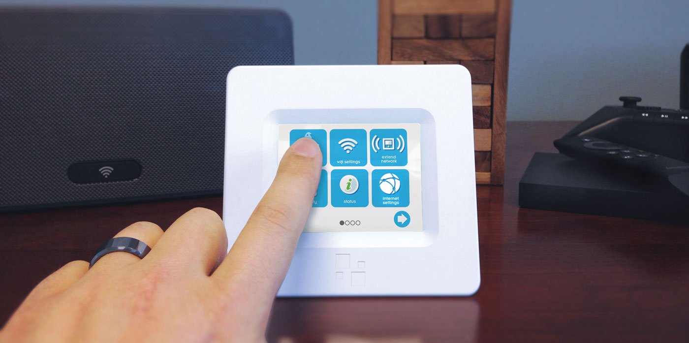 Details: HomeScreen (3 Minute Setup) TouchScreenEffortlessly create a new WIFI network or extend your existing one with HomeScreen! It delivers blazing-fast dual-band 802.11ac signal. HomeScreen comes with an integrated touch screen, Cloud control (via any desktop, iOS/Android device), and custom apps add-ons. HomeScreen ensures quick and straightforward setup. Simply turn on the power, run the setup wizard, connect and go!HomeScreen can be used as a dedicated dual-band wireless router (NOTE: doesn't replace your modem). It also works as a network range extender (2.4 GHz only). The Guest Networking feature is a great solution if you're running an office, hotel, restaurant, or other public space. You can limit the network access of your guests and protect your primary network from malware or network worms. Some experts recommend connecting your smart home appliances to the guest network too. This prevents any potential hacker from gaining access to your primary network's data. HomeScreen is compatible with any internet modem (Cable, Fiber, DSL, etc.), with any provider (Comcast, Time Warner, Verizon, etc.). It also comes with built-in apps that allow you to monitor and control devices connected to the network.HomeScreen's touchscreen can also display the time, weather, or photos stored on your Cloud. Connect the stand on the back of HomeScreen, and you get an instant digital picture frame! Its attractive design can fit on your countertop or living room.TECHNICAL SPECS:Wireless Connection: Dual Band 802.11 AC, Also Supports a/b/g/nModes: Wireless Router, Range ExtenderSoftware Features: Guest Network, MAC Filtering, USB File SharingOther Features: ZigBee Home Automation 1.2, DMZ, Firewall, Port Forwarding, UPnPSecurity Types: WEP, WPA, WPA2Ports: 1 USB 2.0, 1 WAN, 2 LANPower Supply: 12V, 1A (Input: 110V - 220V, 50-60 Hz)Dimensions: 4.5 x 4.2 x 1.4"