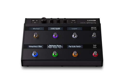 Details: Description HX Effects features 100+ effects taken from the award-winning Helix hardware and software processors, all in a compact, pedalboard-friendly format, and up to nine effects can be run simultaneously. In addition, legacy effects from the acclaimed Line 6 M-Series and Stomp box Modeler pedals are also included. Effortlessly edit effects using the eight capacitive-sensing footswitches, six scribble strip LCDs, and color-coded LED rings. Simply touch a footswitch with your finger to instantly jump to any effect, quickly adjust a parameter, or assign controllers. HX Effects also offers a choice of analog bypass or DSP bypass with trails, and an industry-leading 123dB of dynamic range delivers tremendous depth and ultra-low noise. Extensive routing and control options provide flexibility in the studio or on stage, and facilitate easy integration with traditional pedalboards and amps.