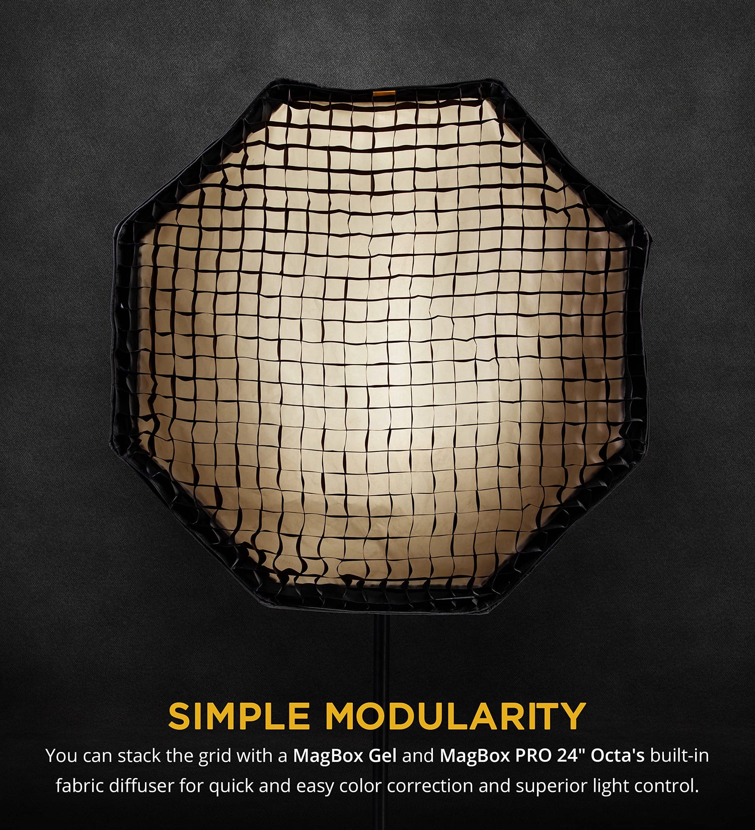 - EASY, MAGNETIC ATTACHMENT - The MagBox PRO Grid have strong magnets embedded on its edge that attaches quickly and securely into the 24" Octa softbox. Plus, the yellow identifier tab informs you which softbox size it is for. Set up and dismantle in seconds.
