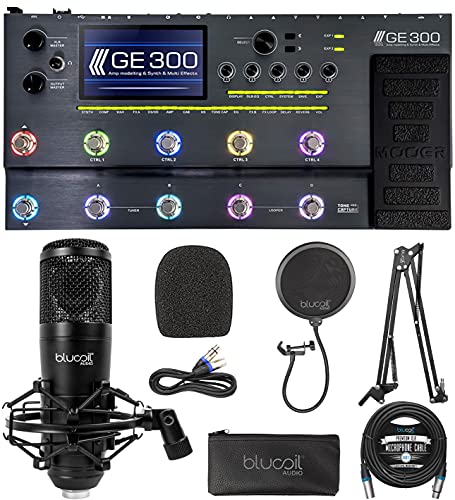 - INCLUDES - MOOER GE300 Amp Modelling Processor Synth Pedal Guitar Multi Effects; 9V Power Supply; USB Cable. Blucoil Cardioid Condenser Studio XLR Microphone; 10-Foot XLR Cable; Mic Shock Mount; Windscreen; Soft Pouch. Blucoil All-in-One Microphone Boom Arm Plus Pop Filter. Blucoil 20-Foot Balanced XLR Cable - Premium Series 3-Pin Cable for Microphones, Speakers, and Pro Devices (Male-to-Female).