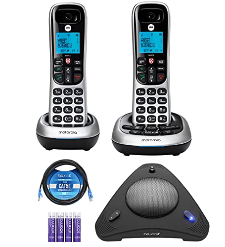 - INCLUDES - Moto rola CD4012 DECT 6.0 Cordless Phone with Answering Machine and Call Block, Silver/Black, 2 Handsets; AC Power Adapter for the Base; Telephone Cords; Rechargeable Batteries; Charging Cradle. 4-Pack of Blucoil 1.5V AAA Alkaline Batteries. Blucoil 10-FT Premium Cat5e Network Cable with RJ45 Male to Male Connectors - 1 Gbps Ethernet Cable with 24 AWG Wire for Computers, TV Tuners, Modems, etc. Blucoil USB Portable Conference Speaker & Omnidirectional Microphone; 6.5-FT USB 2.0 Cable