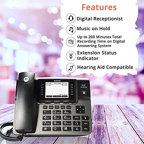 Moto rola ML1002S DECT 6.0 Expandable 1 to 4 Lines Business Phone System with Voicemail, Digital Receptionist Bundle with Blucoil 4 AAA Batteries, 10' Cat5e Cable, and USB Conference Speakerphone