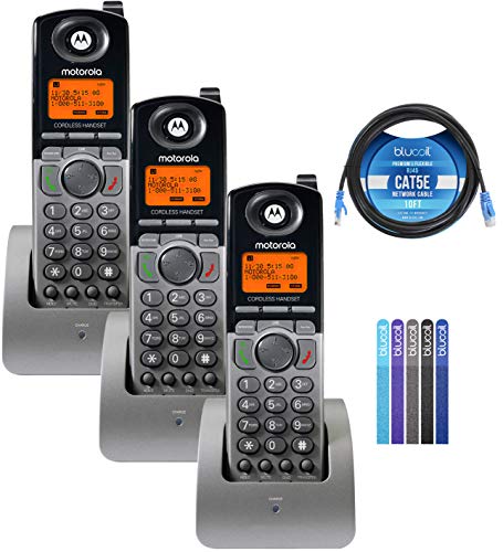 Details: Motorola ML1200 DECT 6.0 4-Line Cordless Handsets (3-Pack)Expand your phone system at home or in the office with Motorola ML1200! The cordless handset operates in an interference-free DECT 6.0 wireless range. Even if this handset is in a different room from the base station, you still get crystal-clear calls with zero dropouts. You can add up to 10 handsets on a single Motorola ML1000 Base Station. No need for you to get additional landline phone cords. Simply connect ML1000 into the phone jack and pair ML1200 to the base station.You can program the ML1000 Base Station to route specific types of calls into one of the cordless handsets. The onboard Digital Receptionist automatically greets callers and routes their calls to the correct extension when no one is able to pick up the ringing line. You can also view and filter incoming callers with Call Waiting Caller ID. *NOTE: You must subscribe first to your Network Service provider's Call Waiting CID service to display the caller's name/number on ML1200's screen.FEATURES AND TECH SPECS:Number of Lines: 4Frequency: DECT 6.0Expandable Extensions: 10 HandsetsData Transmission: Full Duplex SpeakerphoneFunctions: 99 Names/Numbers Directory, Digital Receptionist and Answering System, Conference Calls, Intercom, 10 Programmable Ringtones, Supports Call Waiting Caller ID ServicePower Source: Battery PackAlso Comes With:Blucoil 10-FT 1 Gbps Cat5e CableThe Blucoil Cat5e Cable efficiently transfer signals from a network router to your telephone or TV tuner. It supports large networks running at 1GB/s and features non-corrosive Micron Gold Plated RJ45 connectors plus a 24 AWG Gauge. The ANSI/TVI-568-C.2 standard cable offers lesser electrical resistance and reduces the crosstalk amount.Get the ML1200 Bundle today and receive 5-Pack of Blucoil Reusable Velcro Cable Ties!