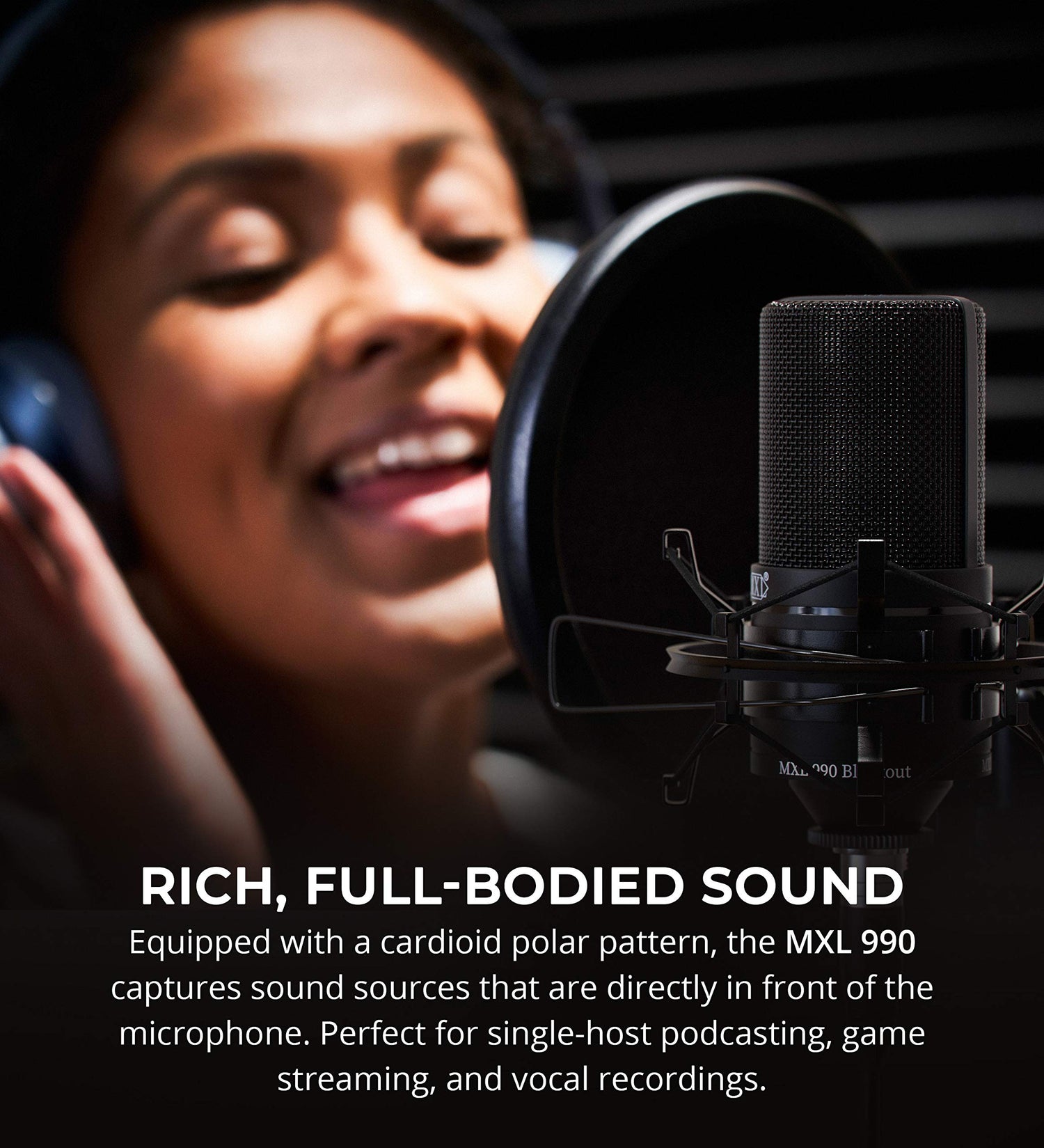 Details: MXL 990 Cardioid Condenser Microphone (Black)The MXL 990 Microphone provides a smooth and sweet tone that's ideal for recording vocals and acoustic guitars. It features a low-noise FET preamp and balanced output, which produces a neutral and nicely balanced sound with just a hint of high-end sizzle. Equipped with a cardioid polar pattern, the MXL 990 picks up audio in front of the mic capsule and rejects off-axis noises. The low 20dB self-noise makes the microphone excellent for close-miking. *NOTE: This is a condenser mic and requires 48V phantom power to operate. You cannot directly plug this XLR microphone into your computer.TECHNICAL SPECS:Mic Type: Pressure Gradient CondenserRequired Phantom Power: 48VCapsule Size: 22mm | Diaphragm: 6 Micron Gold-SputteredPolar Pattern: CardioidFreq. Response: 30Hz-20kHzMax SPL for 0.5% THD: 130dBConnector: 3-Pin XLRAccessories: Isolation Shockmount; Adapter for Mic Stand; Hard CaseAlso Comes With:Blucoil Boom Arm Plus Pop FilterThe 30" long Blucoil Boom Arm Pop Filter accommodates all kinds of mics and shock mounts (3/8"-5/8" threading adapter and mic clip are included). It is made of heavy-duty steel, zinc alloyed parts, and can be rotated 360-degrees. The foldable boom arm includes a removable Blucoil Pop Filter that reduces hisses and p-popping. *NOTE: Install the boom arm vertically for it to hold up the weight of a 3.3 lb mic.Samson SR350 Closed-Back Stereo HeadphonesThe over-ear Samson SR350 Headphones feature 35mm drivers, which produces outstanding bass and 110dB sensitivity. It delivers 32 Ohm impedance and excellent noise isolation. You can use SR350 for monitoring audio recordings or casual listening thanks to its wide 20Hz-20kHz frequency range.Get this bundle today and receive these Blucoil exclusives:10-FT Balanced XLR Cable4-Pack of 12" Acoustic Foam Isolation Panel Wedges
