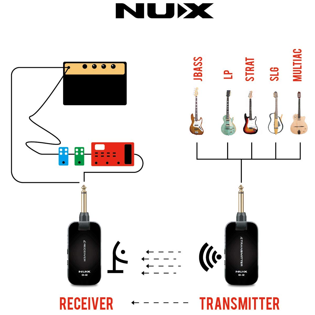 Details: NUX B2 is a digital wireless system designed for maximum compatibility for home or studio rehearsals, designed for Passive Guitar,such as Electric Guitar.