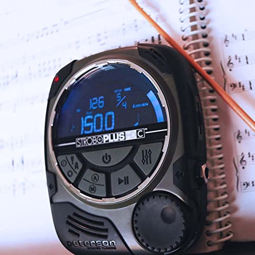 Details: Peterson StroboPlus HDC TunerThe StroboPLUS HDC features three modes. Its first mode, TUNER, provides ultra-high 0.1 cent tuning accuracy. With a variable color LCD display, you can easily read the tuning even under direct sunlight. The second mode, METRONOME, contains 100 presets. You can hear the metronome sound through the onboard speaker or plug headphones in the 3.5mm jack. Lastly, the "Timer" mode comes in handy for timing the stage or run time of pieces in rehearsal. A 1/4" instrument pass-thru allows you to tune electronic instruments. You can also connect a pickup to tune acoustic guitars.TECHNICAL SPECS:Accuracy: 0.1 CentsNote: C0-A#8 Range; Automatic or Manual SelectionTone Generator: C1-G9Concert A Range: 390Hz-490HzTempo Range: 10-280 Quarter Notes per MinuteTempo/Rhythm Maps: 10 LocationsBeats per Measure: 1-19Beat Values: 2, 4, 8, 16Transposition Range: -6 to +5Freq Response: 16.35Hz-7302HzSweetened Tunings: 219Polyrhythms: Element 1 / Element 2 (1-19 Each)Display: 512 Segments Variable Backlight Color LCDOther Features: Built-in Mic and Speaker, Set Timer/Stop Watch, Metronome, Firmware Updateable, Peterson Connect App CompatiblePower Source: 5V 500mA AC Power AdapterConnectors: 1/4" Mono Input, 1/4" Mono Thru Output, 3.5mm Headphone, Micro-USB, Vibe Clip OutputAlso Comes With:Blucoil 10-FT Straight Instrument CableThe 10-foot Blucoil instrument cable interconnects your electronic musical instruments (e.g., guitars, bass, keyboards) to a preamp or amplifier's unbalanced input. It features 1/4" male to 1/4" male straight mono plugs. The metal Neutrik connectors ensure reliable durability and improved contact integrity. The cords are protected with conductive PVC shielding, which cancels out EMI and RMI. Get this bundle today and receive 4-Pack of Blucoil Celluloid Guitar Picks with 0.71mm Gauge (Assorted Colors).