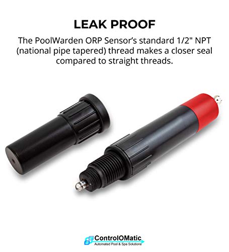 Details: PoolWarden ORP Sensor - Industrial Pool and Spa Water Chemical Controller Probe The PoolWarden Oxidation-Reduction Potential (ORP) Sensor measures the chlorine oxidizing/reducing ability in your spa water or swimming pool. It is made with a premium platinum tip with 1/2-inch NPT (national pipe tapered) standard thread. The standard NPT thread makes sure there is no leakage at all. Plus, PoolWarden offers electrodes with color-coded caps for easier sensor identification (e.g., red for ORP and blue for pH sensor). Compared to others, the PoolWarden ORP sensor lasts longer thanks to its double junction construction. This probe is compatible with the ORP sensor for Acu-Trol AK110, AK2100, AK600, and ControlOMatic PoolWarden.