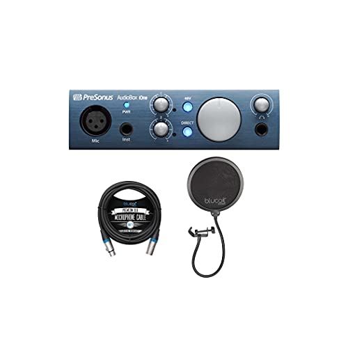 - INCLUDES - PreSonus AudioBox iOne USB Audio Interface with 48V Phantom Power; USB Cable; Downloadable Studio One Artist and Capture Duo App. Blucoil 10-Foot Balanced XLR Cable - Premium Series 3-Pin Cable for Microphones, Speakers, and Pro Devices (Male-to-Female). Blucoil Audio Microphone Pop Filter Double Layer Mask Shield for Studio Recording and Broadcasting with Stand Clip Stabilization Arm, Swivel Mount.