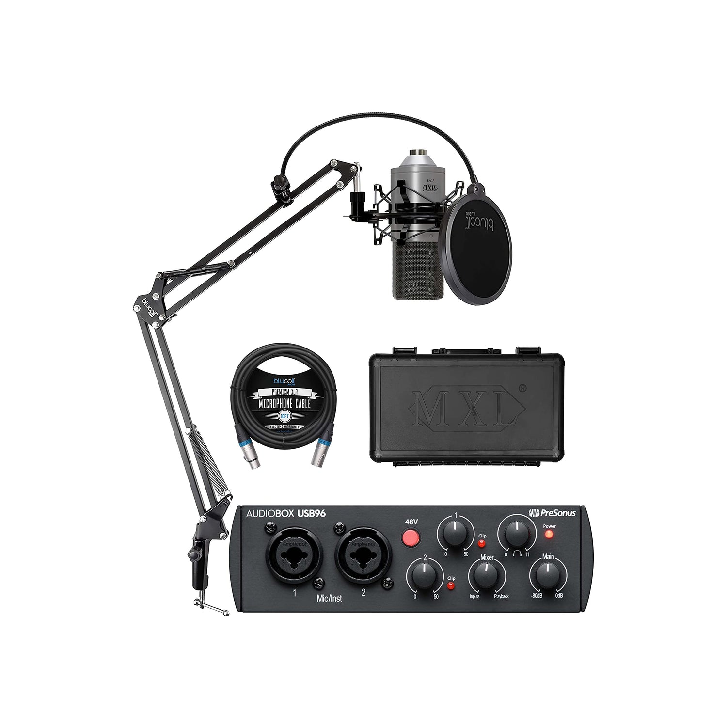 - INCLUDES - PreSonus AudioBox USB 96 2x2 USB Audio Interface 25th Anniversary Edition; Downloadable Studio One Artist & Universal Control. MXL 770 Cardioid Condenser Microphone (Silver); Shock Isolation Mount; Rugged Carry Case. Blucoil All-in-One Microphone Boom Arm Plus Pop Filter. Blucoil 10-Foot Balanced XLR Cable - Premium Series 3-Pin Cable for Microphones, Speakers, and Pro Devices (Male-to-Female).