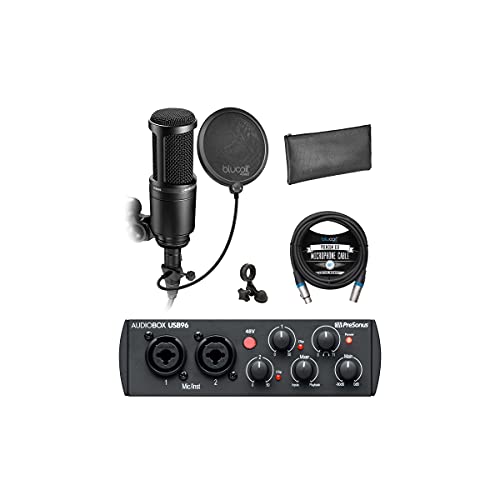 Details: PreSonus AudioBox USB 96 Audio Interface 25th Anniversary EditionThe black PreSonus AudioBox USB 96 offers 2 combo mic/instrument inputs with quiet preamps and +48V phantom power. You can plug in 2 condenser mics and record on 2 separate channels. Each channel has LED clip indicators and 0-35dB mic gain range. This audio interface also provides a Mixer Control knob for blending the input signal with your PC's playback stream. Want more? Don't forget to register your Audiobox USB 96 at PreSonus and get access to the complimentary Studio One Artist DAW!TECHNICAL SPECS:Compatible with: Windows and Mac with Available +8GB RAM, 20GB Disk SpaceA/D Resolution: 24bit/96kHzPreamps: 2 Mic Preamps with +48V Phantom PowerFrequency Range: 20Hz-20kHzDSP/Effects: 20 Native FX Plug-InsGain Control Range: 0-35dBConnectors: XLR-1/4" Input, 1/4" Line Out, 1/4" Phones, USB-BPower Source: USB Bus PowerAccessories: USB Cable; Downloadable Studio One Artist and Universal Control SoftwareAlso Comes With:Audio Technica AT2020 Condenser MicrophoneThe AT2020 Condenser Microphone features a wide 20Hz-20kHz frequency response and low 20dB self-noise. It has a 124dB dynamic range and 74dB SNR. The cardioid mic offers great noise isolation and can handle up to 144dB SPL. *NOTE: This mic requires 48V phantom power and comes with a stand mount for 5/8"-27 threaded mic stands, 5/8"-27 to 3/8"-16 threaded adapter, plus a travel pouch.Blucoil 10-FT Balanced XLR CableThe 10-foot Blucoil cable interconnects your microphone to an audio interface, mixer, or preamp. It is made with premium Male-to-Female Neutrik-equivalent Zinc Alloy connectors that are protected with a high-density PVC jacket. The 92% shielding protects your audio signal from EMI/RFI.Get this bundle today and receive a Blucoil Microphone Pop Filter plus 5-Pack of Reusable Velcro Cable Ties!