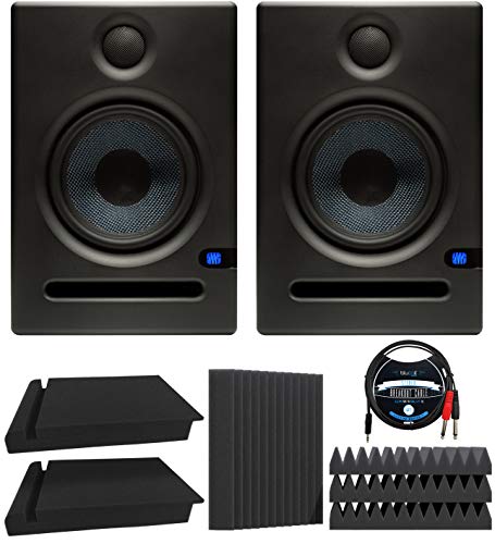 - INCLUDES - PreSonus Eris E5 2-Way Active Studio Monitors (Pair); IEC Power Cable; 4 Foam Pads. 2-Pack of Blucoil Studio Monitor/Speaker Acoustic Isolation Filler Foam Isolator. 4-Pack of Blucoil 12-inch Acoustic Foam Isolation Panel Wedges with Adhesive Tapes. Blucoil 3.5mm TRS to Dual 1/4" TS Male Stereo Breakout Cable, 5-Foot.