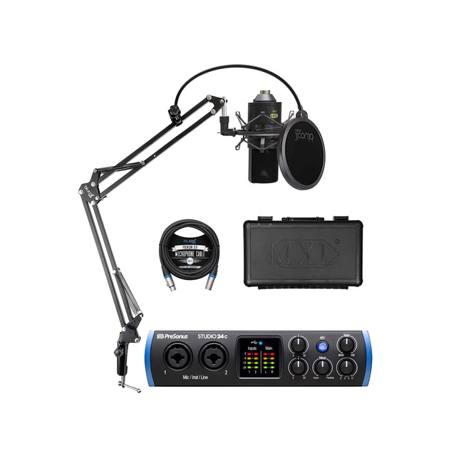 - INCLUDES - PreSonus Studio 24c USB-C Audio Interface with +48V Phantom Power; Studio One Artist and Studio Magic Plug-In Suite Downloadable Software; USB-C Cables. MXL 770 Cardioid Condenser Microphone; Shock Isolation Mount; Rugged Carry Case. Blucoil All-in-One Microphone Boom Arm Plus Pop Filter. Blucoil 10-Foot Balanced XLR Cable - Premium Series 3-Pin Cable for Microphones, Speakers, and Pro Devices (Male-to-Female).