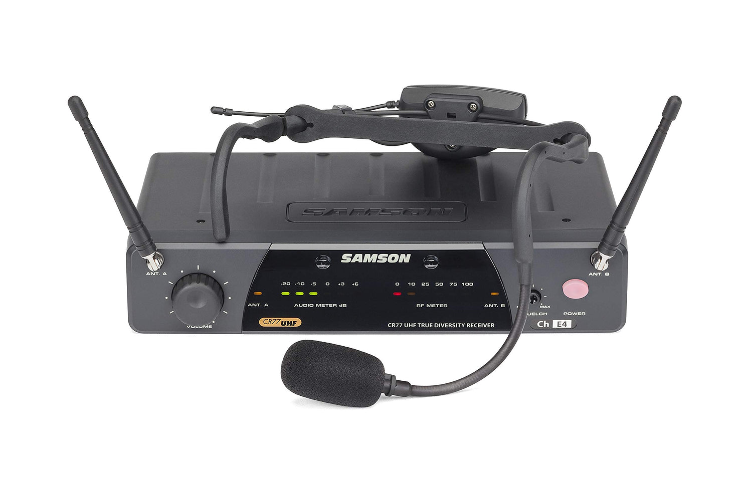 Details: Samson AirLine 77 AH7 Wireless SystemFree yourself from cumbersome cables or belt packs with the Samson AirLine 77 AH7 Wireless System. It includes the sweat-resistant Fitness Headset Mic and CR77 True Diversity Wireless Receiver. Samson mounted the unique AH7 micro transmitter to the Qe Fitness Headset Mic, so you can focus more on your workout. The headset uses a bidirectional condenser microphone to capture your voice. It minimizes the background noise and feedback problems for crystal-clear audio. The receiver operates in a 489.050 MHz band for up to 300-FT.TECHNICAL SPECS:Wireless Specs: Analog UHF - 489.050MHz Frequency Band; Up to 300-FT Working Range (Open-Line-of-Sight)Audio Frequency Response: 50Hz-15kHzMicro Transmitter: Max +3dB RF Output Power; 1 AAA Battery; Up to 8 Hours Battery LifeHeadset Mic Specs: Mono Condenser Capsule; Bidirectional Polar PatternCR77 Receiver: PLL Oscillation; 1/4" Wavelength Rod Antenna; 18dBm Sensitivity; 90dB Overall SNR; 15V Power AdapterAudio Levels: -20dBm Line Out, -40dBm Mic Out, 0dBv 1/4" OutputAccessories: AC Adapter; 1/4" Audio CableAlso Comes With:Blucoil 10-FT Balanced XLR CableThe 10-foot Blucoil cable interconnects your microphone to an audio interface, mixer, or preamp. It is made with premium Male-to-Female Neutrik-equivalent Zinc Alloy connectors and protected with a high-density PVC jacket. The 92% shielding blocks EMI/RFI from ruining your audio signal from EMI/RFI. The OFC wire provides the best possible conductivity and avoids unwanted degeneration.Get this bundle today and receive these Blucoil exclusives:5-Pack of Reusable Velcro Cable Ties10-Foot Instrument Cable with 1/4" Straight Connectors and PVC Shield for Guitars and Amps