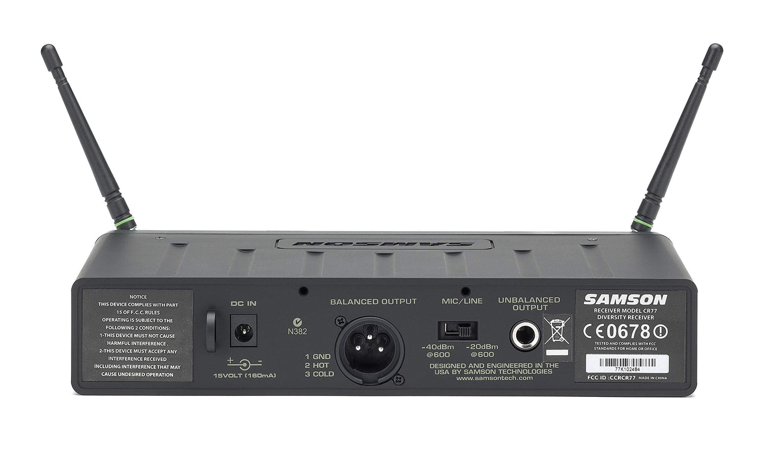 - EASILY INTEGRATES TO AV SYSTEMS - The rack-mountable CR77 receiver has up to 300-FT wireless range. It features 1/4-wave antennas and a mic/line level output switch to attenuate the balanced output. You can use the XLR and 1/4" outputs* to connect CR77 to professional or consumer audio equipment. *NOTE: Both of the unbalanced and balanced outputs can be used simultaneously